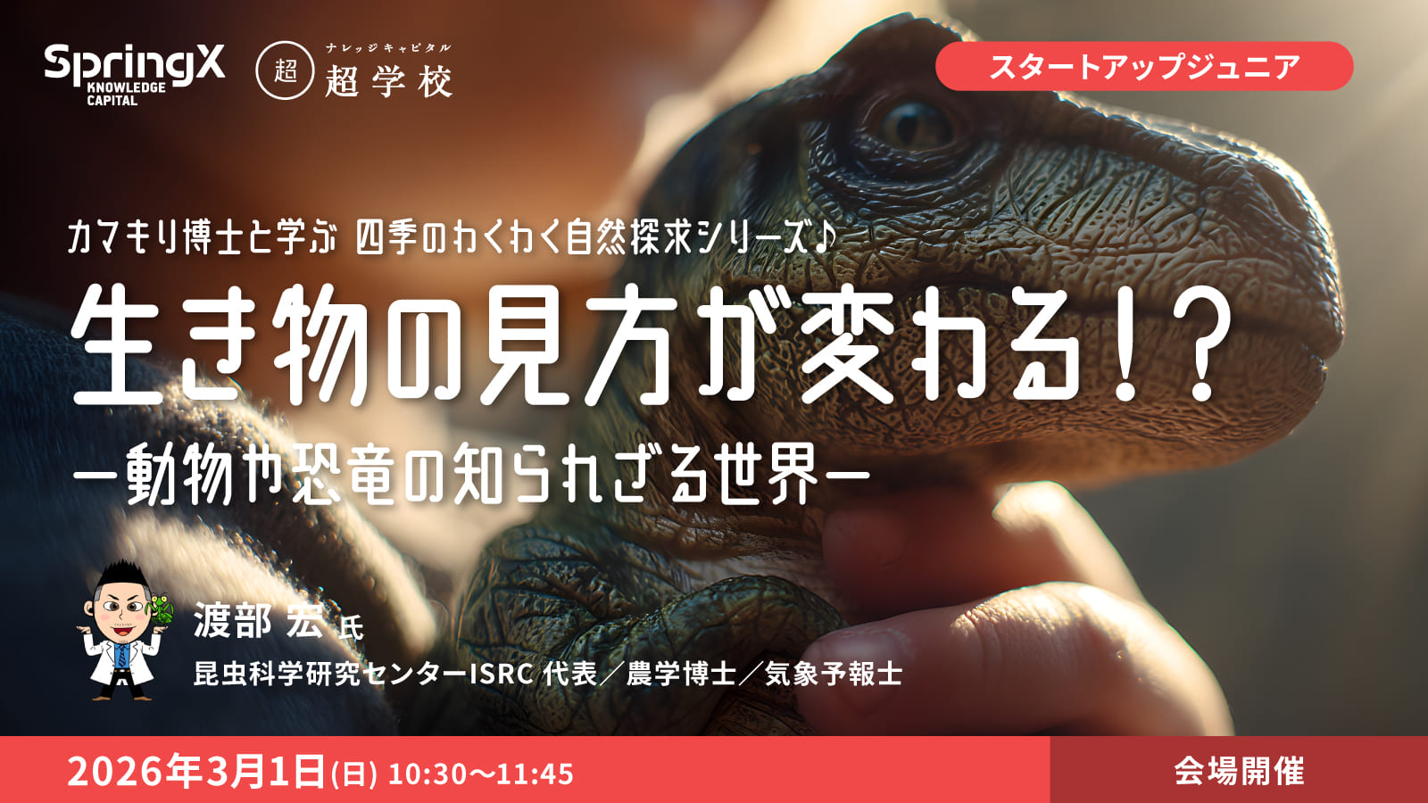 | タイトル | SpringX 超学校 カマキリ博士と学ぶ 四季のわくわく自然探求シリーズ♪ 生き物の見方が変わる!? -動物や恐竜の知られざる世界- |