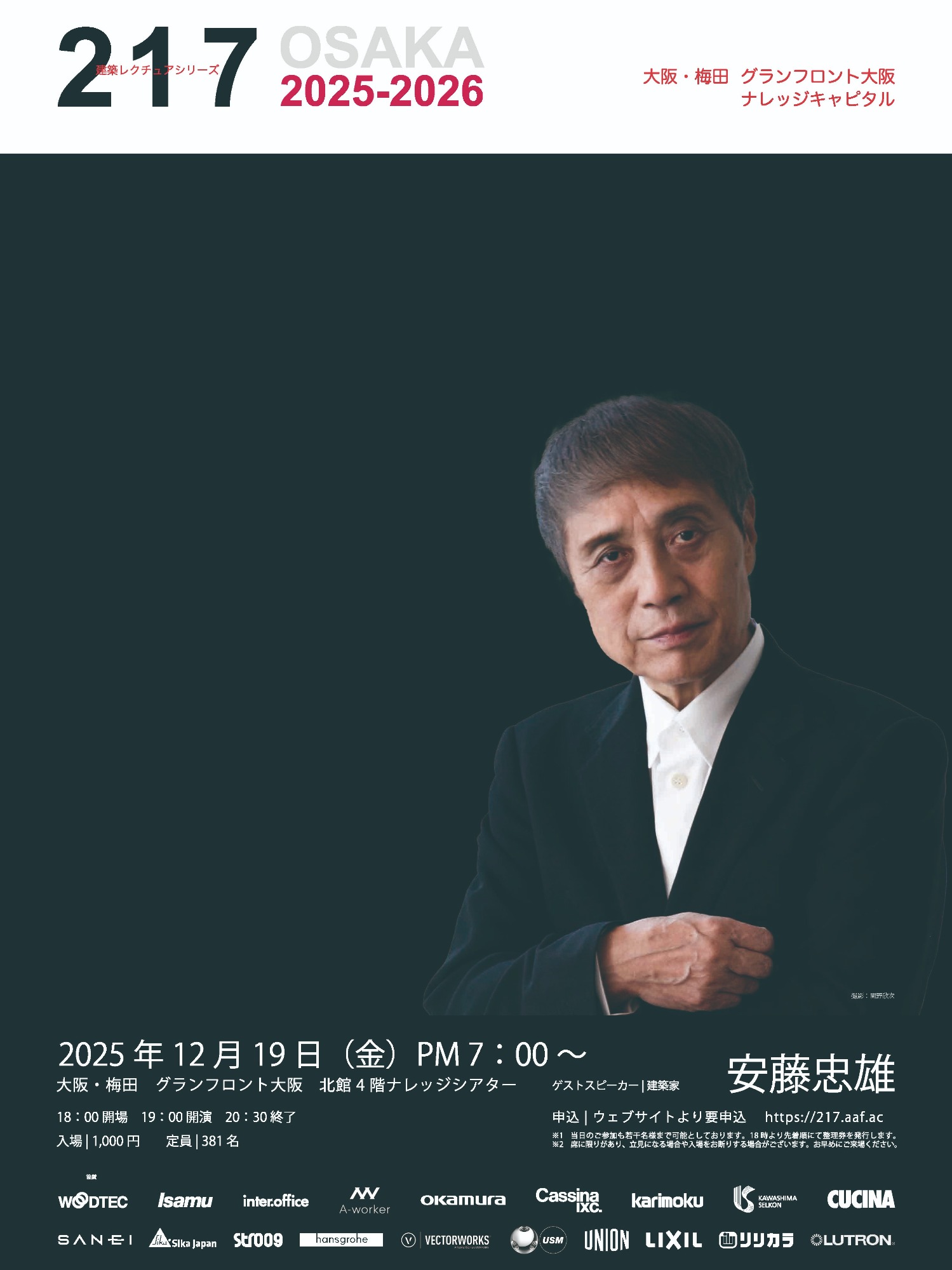 大阪を拠点に活動を行う2人の建築家、芦澤竜一氏と平沼孝啓氏が1組のゲスト建築家をお呼びして、年に7回(2ヶ月に1度、午後7時から)開催する建築レクチュアシリーズ。建築家としての作家的な思想をお聞きしながら、作品づくりの手法や建築へのアプローチなどを探ります。
