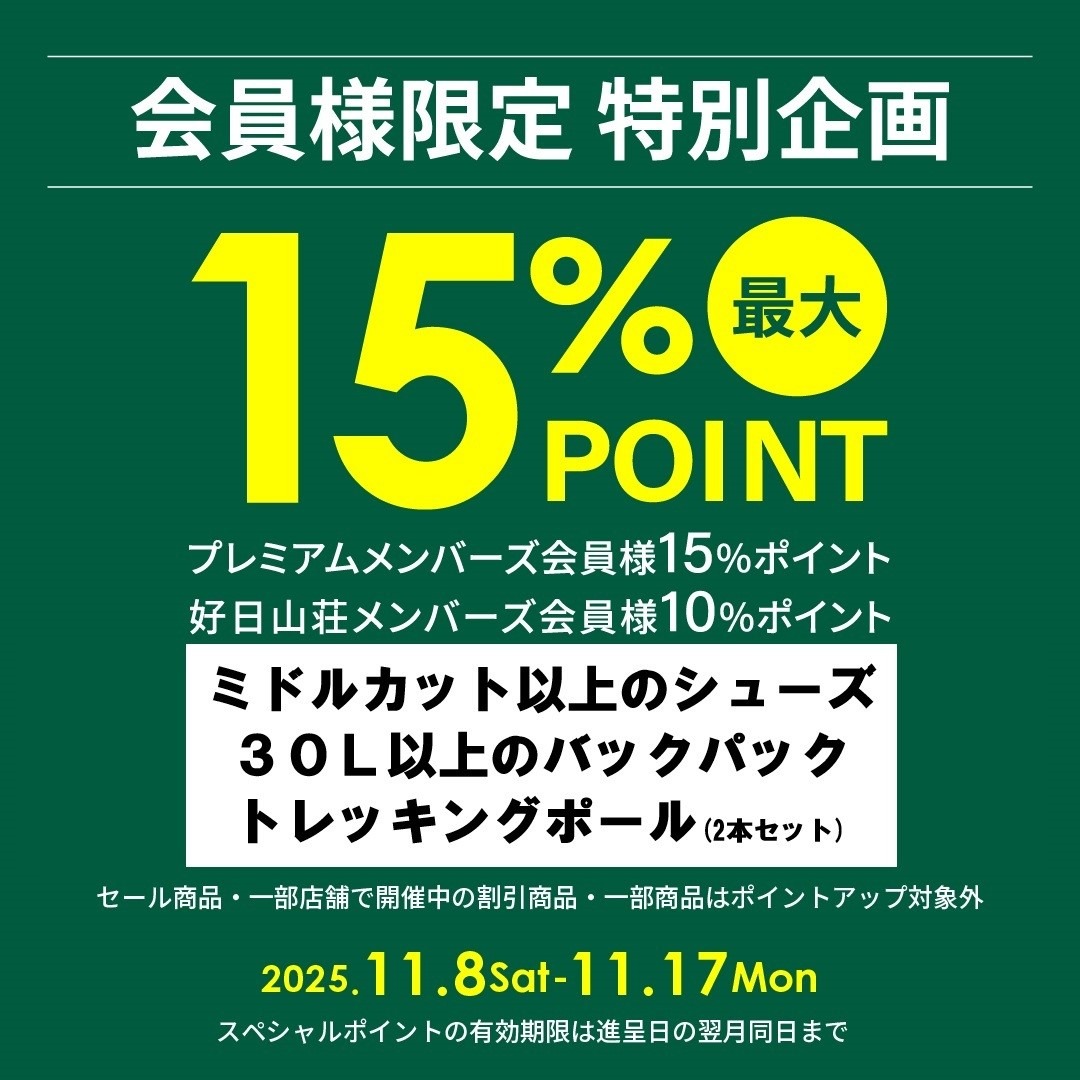 【好日山荘】ポイントアップキャンペーン開催中!11/17(月)まで