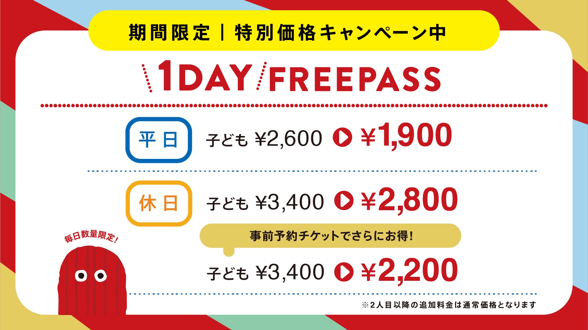 1DAYパスを特別価格でご利用いただける期間限定キャンペーンを開催します。