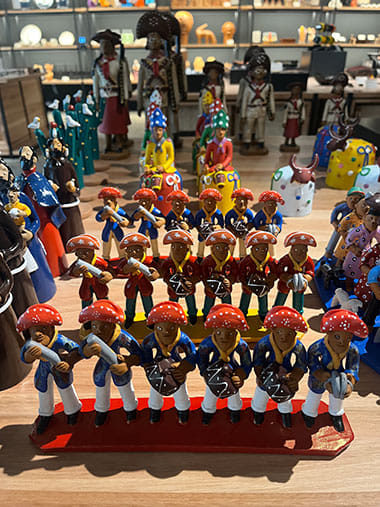 ブラジルの北東部の文化や人々の習慣を表現するオブジェが粘土で作成されます。パンタナール地域に生存する鳥や動物の木彫りも多いです。
