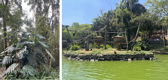 動物園があるこの場所の植物はMata Atlantica (ブラジルの大西洋岸の北部から南部に存在する森林)に属し、自然そのままの状態で維持されていますので、大きな木や青々とした植物も楽しめます。