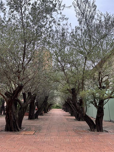 Casa Bradescoの外側はローズウッドホテルの庭の一部とつながっていますので、少し散歩してみました。樹齢150年のオリーブの木がきれいに並んでいました。まだ改装中の場所もありましたが、庭がきれいに手入れされていました。チャペルの後ろ側が見えました。実は改装している時、このチャペルの地下が30mも掘られ、60mの大きな8つの柱でチャペルを支えていたそうです。チャペルの地下には映画館やイベントホールが造られたとのことです。すごい規模の工事ですね。