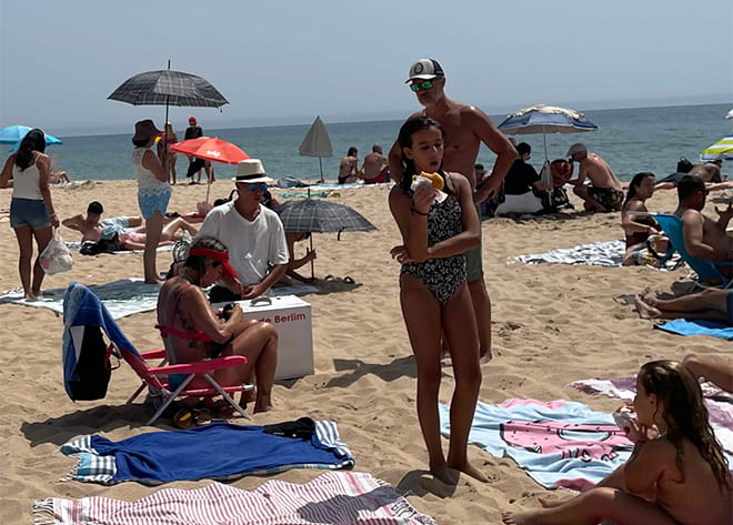 8月の真夏日、Carcavelos(カルカヴェロス)ビーチに行ったら、いました、いました!クーラーボックスを持ち歩き、「Olha! Bolinhaaaaa!」と叫ぶおじさんが!少し雑用をしている間に、どこかに移動してしまったみたいで、また逆方向に歩いて来るのを待つことに。少しすると、先ほどのおじさんと同じような格好で、同じように大声を張り上げているお兄さんがやってきました。おじさんと交代したのか聞いてみると、おじさんはクーラーボックスが空になり、補充しに行ったと。衛生面も考え、大量には持ち歩かず、定期的に補充する必要があるのです。炎天下の砂浜を歩き回りながら売り歩くのですから、それは非常にハードな仕事です。実際、近年ではビーチでの販売者が減ってきているともいわれています。とはいえ人気は衰えることなく、夏のピーク時には一日に数百個が売れることもあるそうです。