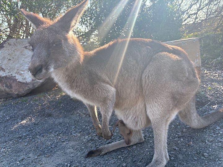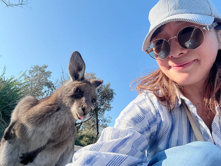 What surprised me most was that they had no fear at all of humans. If anything, they seemed to stare at us and even look towards the cameras as we readied them for a shot—as if they knew what we were saying. My heart was flooded with warmth—were wild kangaroos really this friendly? I was again moved when I saw a baby kangaroo sitting in his mother’s pouch. His little head looked like it still had soft fur, and I couldn’t help but smile when he peeked his tiny face out. What a wonderful experience to meet with wild animals this close! Something you would almost never get to do in the city.