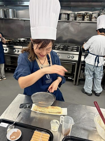 The theme was Italian, and we made a main dish of risotto along with an appetizer and tiramisu for dessert. I was in charge of the dessert, so I made the tiramisu. The ingredients were the same for every team, so they were judging us on the finer points such as amount, size, balance among the layers, and presentation. Even using the same ingredients, it was fascinating to see how completely different each team’s dishes came out.