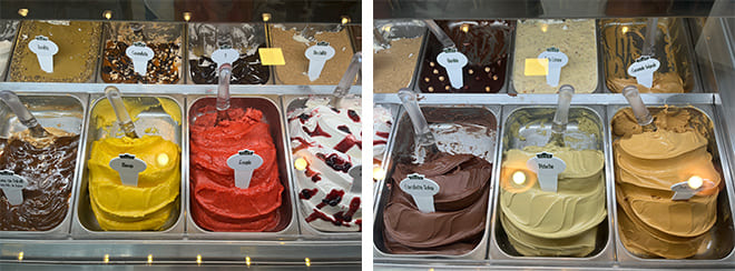 I should say that although there are differences between gelato and ice cream, and gelaterias are particular about these differences, I don’t have the detailed data to differentiate gelato from ice cream yet, so I have used the general term "ice cream" in this article.