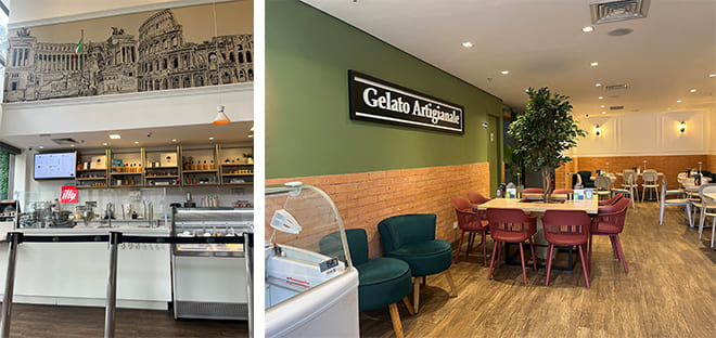 In São Paulo, more and more upmarket ice cream parlors have opened over the last few years. By “upmarket,” I mean parlors that are like cafes. They have tables where you can sit down, and depending on the parlor, you can order coffee too, while some parlors also sell cakes as well as ice cream. The ice cream at these upmarket parlors is different from the ice cream sold at supermarkets in that it has a richer, milkier flavor as well as a creamier, smoother texture. The prices are also higher.