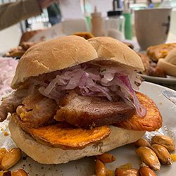 It’s “pan con chicharrón.” The literal translation is "bread with chicharrón (fried pork with skin on)." Although the name is simple, it has rich, complex flavors and is the go-to thing to eat in the morning, a substantial breakfast that Peruvians have long loved. - Continue reading